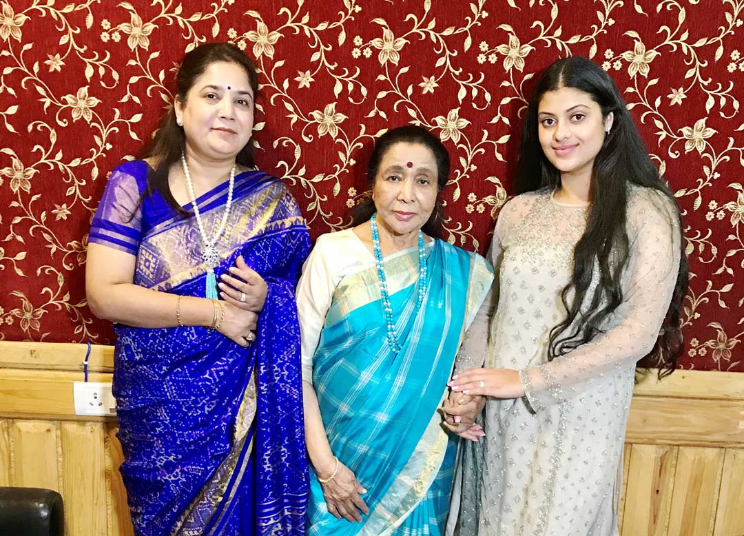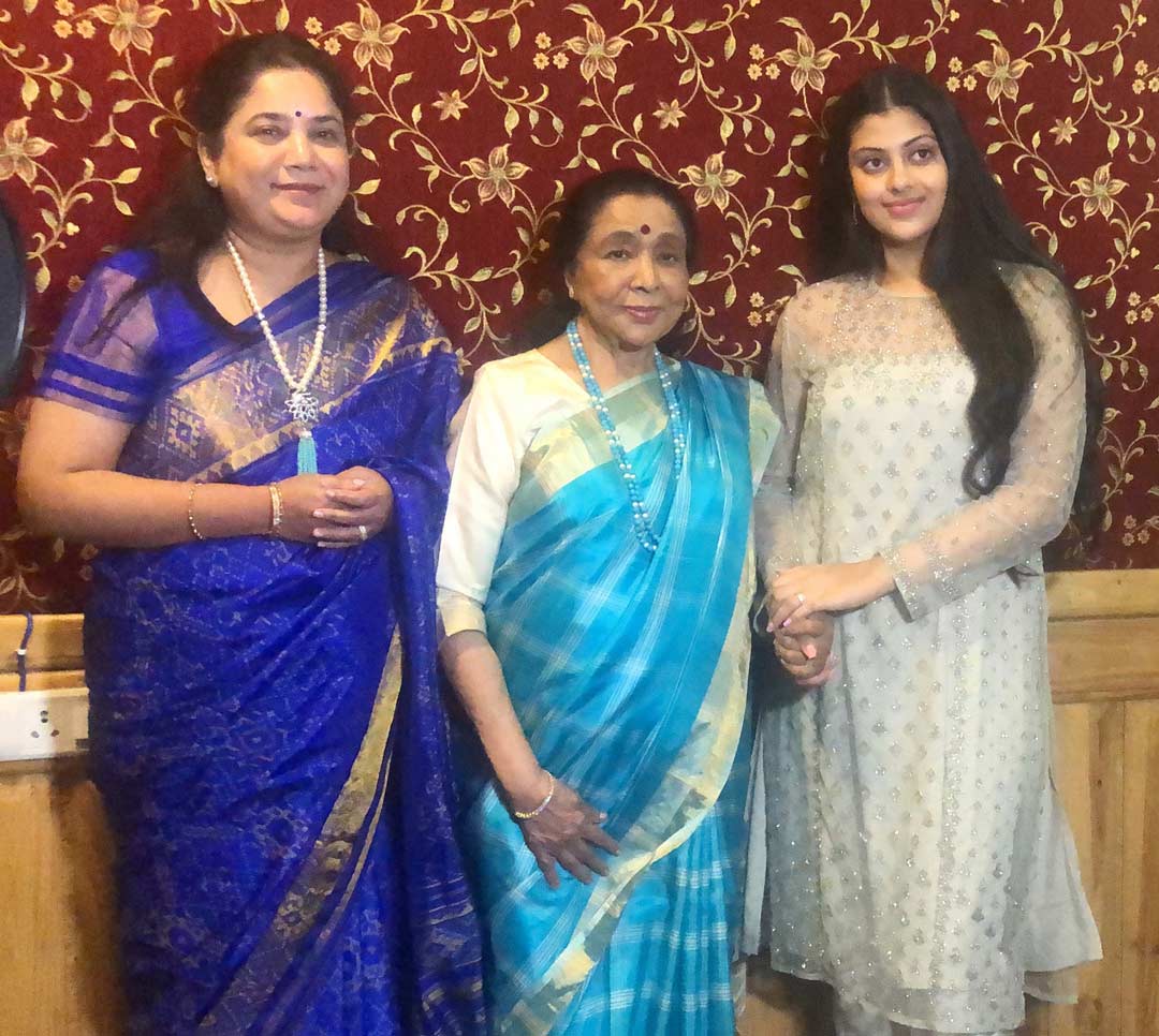 Veteran singer Padma Vibhushan Asha Bhosle & granddaughter Zanai Bhosle, along with writer Rajita Kulkarni, announced their songs, in gratitude to the Spiritual & Humanitarian Leader Gurudev Sri Sri Ravi Shankar at Pancham Studios, Andheri West. While Asha Bhosle has sung one song, Zanai has sung the other.