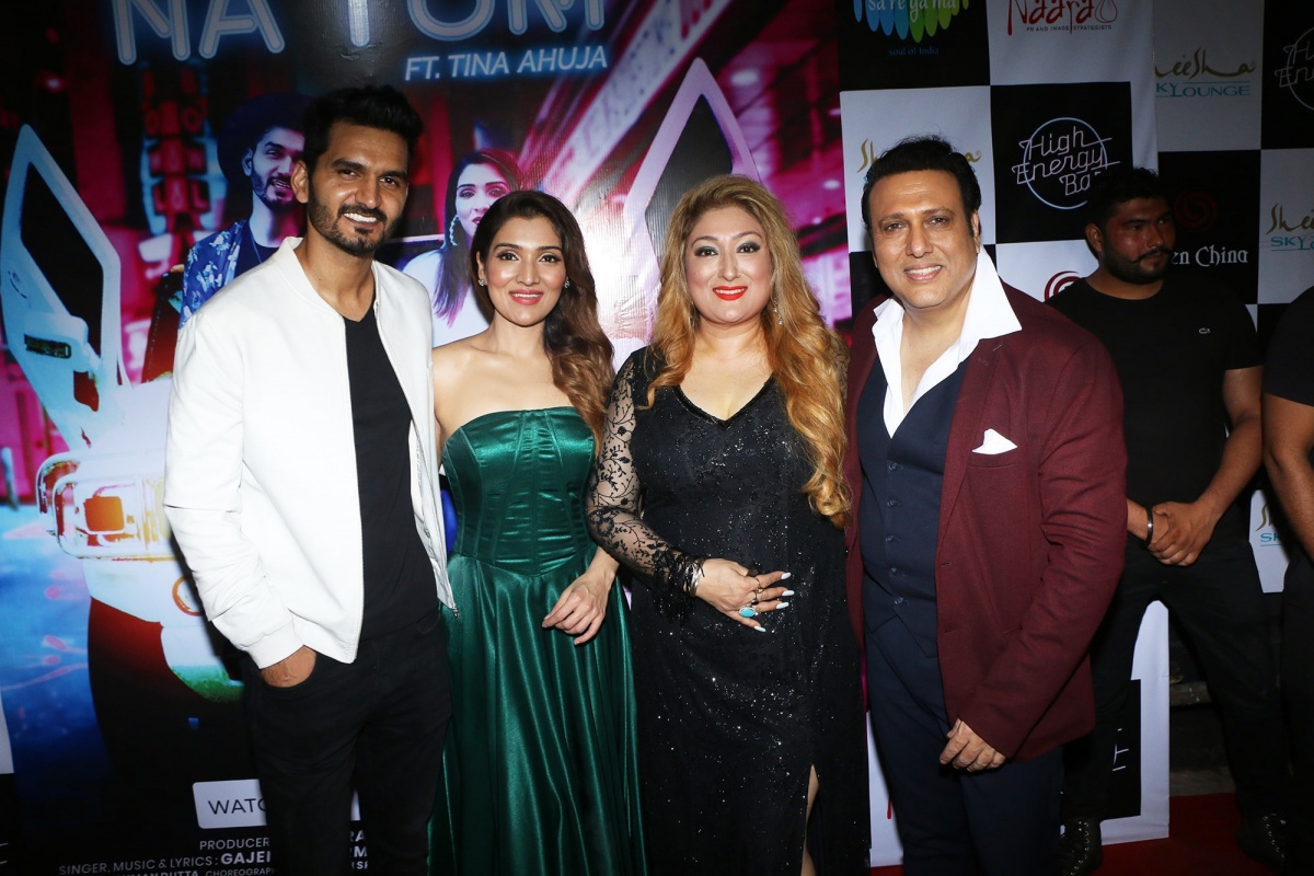 Gajendra Verma, Tina Ahuja,Sunita Ahuja and Govinda at the launch of Hitendra Kapopara's song Milo Na Tum featuring Tina Ahuja & Gajendra Verma-min