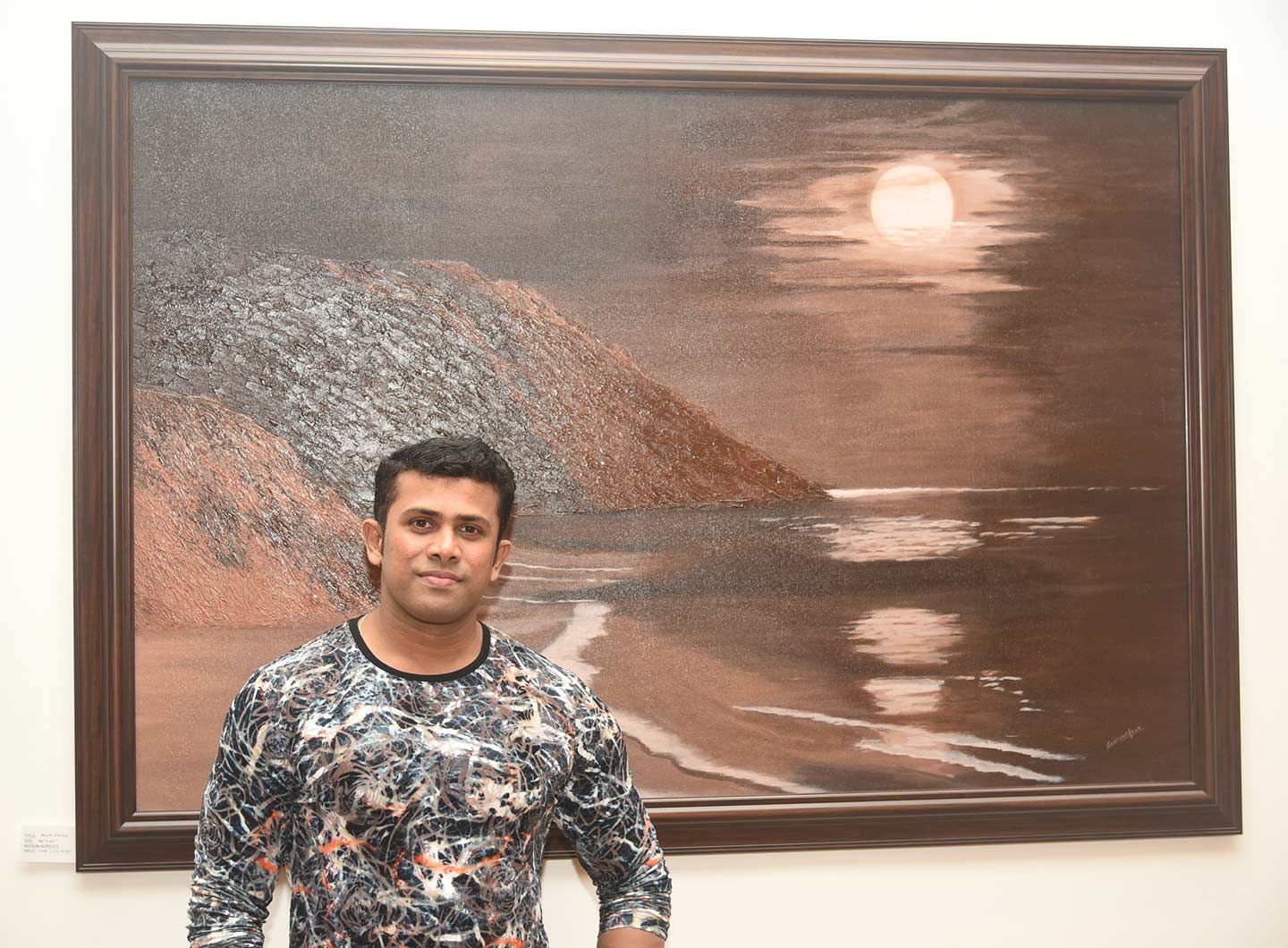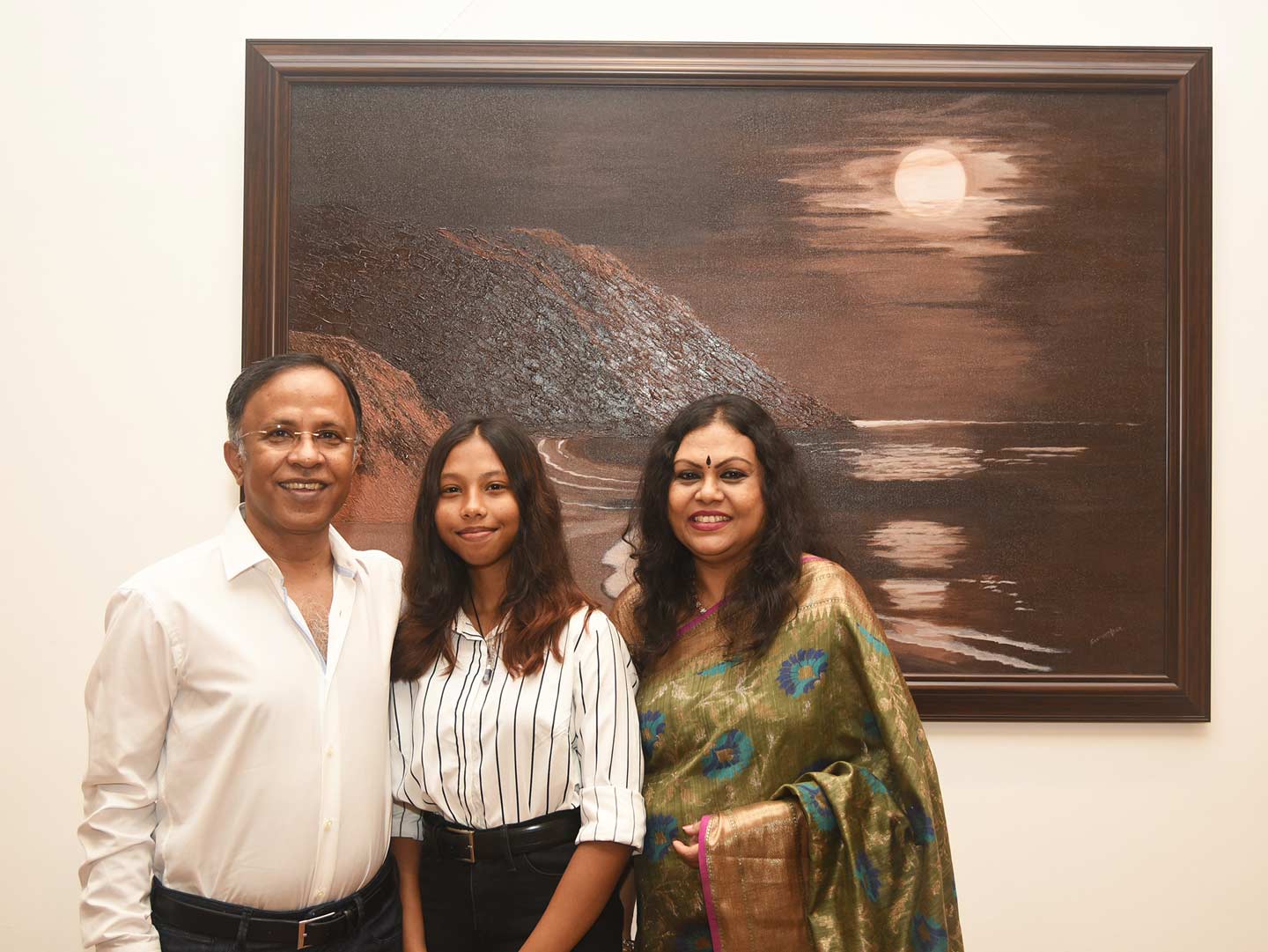 As she sits by her window, the sea simply waves to her. Cresting on the soothing sound of the waves, Sanjukta Arun’s works captures the myriad moods of Nature on to the blank canvases, bringing to life, the brilliant blooms, the unstoppable waves, the green covers… Sanjukta captures the essence of life emerging from the sea’s love-play with the skyscrapers in her latest exhibition, Sangam, which also happens to be her 45th exhibition across India and the globe.